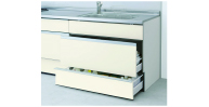 奥行いっぱいまで見渡せる、収納充実の引き出し式。